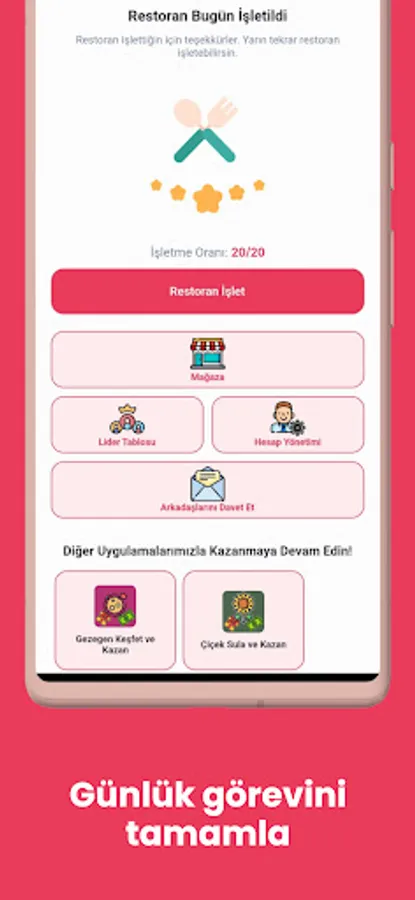 Manage your own restaurant, serve delicious food and get the chance to win prizes with the Own Restaurant & Earn app! Just take 5 minutes a day to create menus, prepare orders, collect points and get the rewards you want!