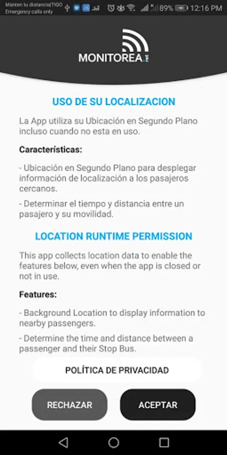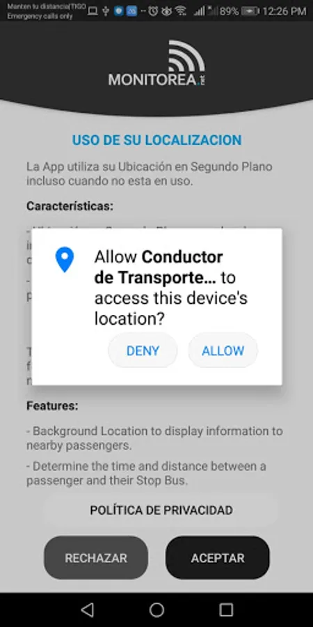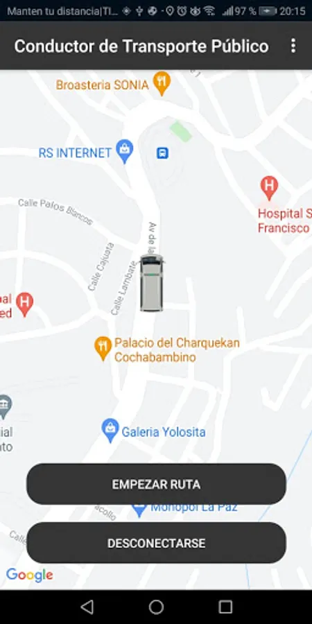 Through this App, Public Transport drivers can start their daily work supported by the Monitoring Platform. Same that allows passengers to view the routes and mobility closest to their location; to approach them with greater security and without long waiting times.