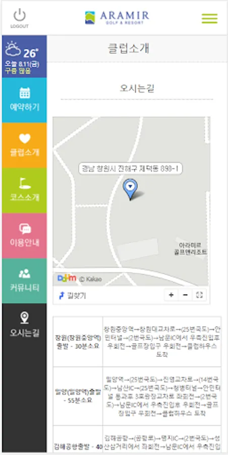 We ara Mir & Golf Resort is available with a 5-minute walk from the National Highway Route 2 south gate IC easily visited within an hour anywhere in Busan, Gyeongnam.