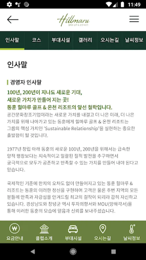 Donghun Hill Maru Golf & Hot Spring Resort, located in Yeongnam as well as Yeongnam Mountain, Upo Swamp, and Bugok Hot Spring, has been designed to harmonize with humans while preserving the beauty of Mother Nature.