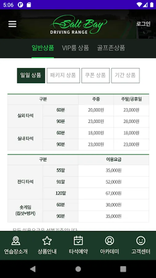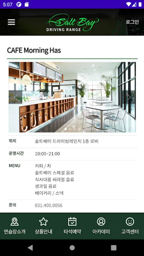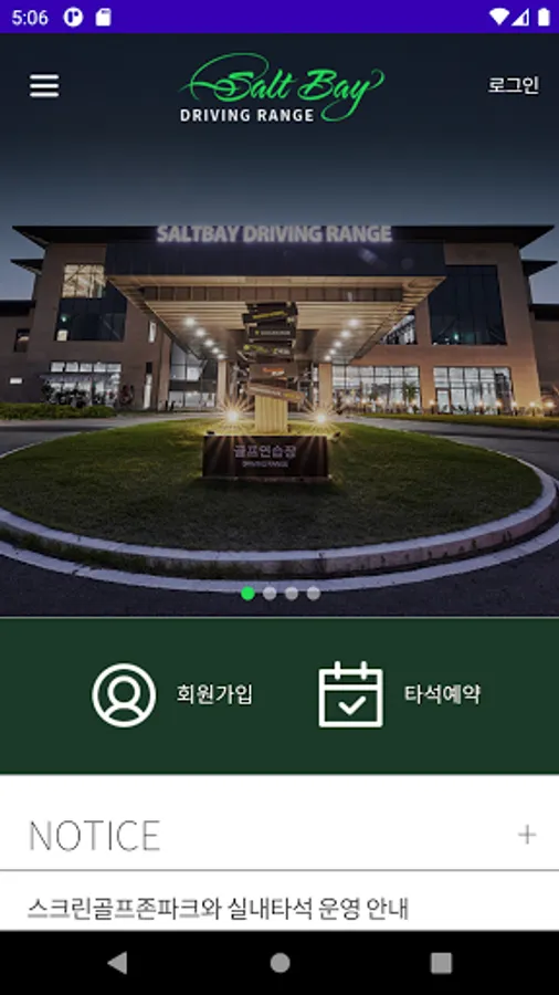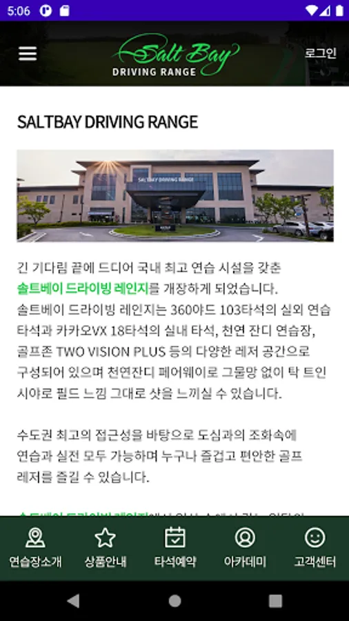 The Salt Bay driving range is 360 yards, 103 outdoor practice at-bats and 18 indoor at-bats for Kakao VX, natural grass driving range, golf zone TWO VISION PLUS, etc.