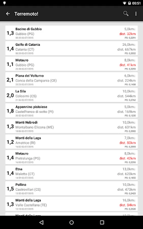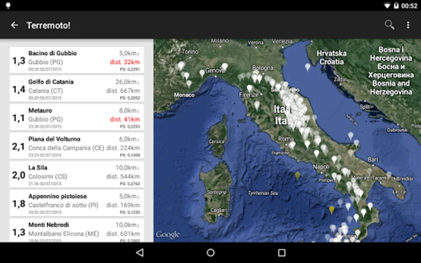 The application shall ONLY show the list of Italian seismic events, no guarantee on the truthfulness and accuracy of the data is guaranteed by the author of the application.