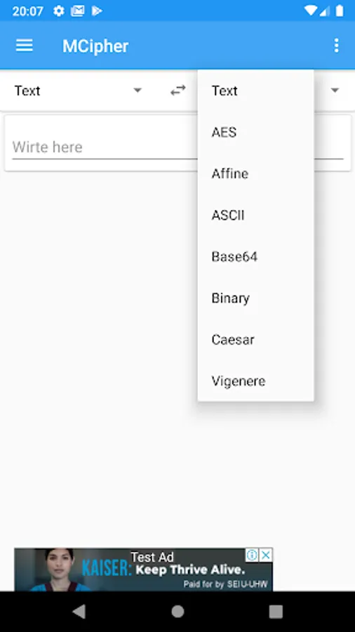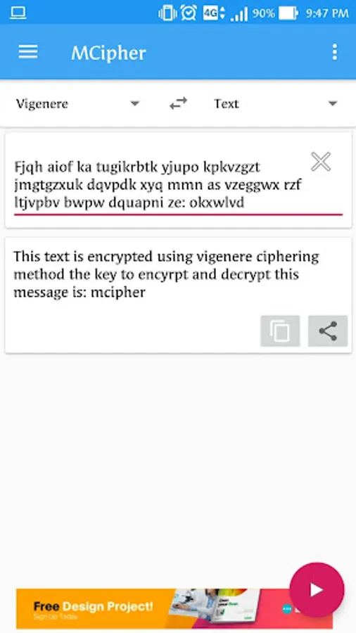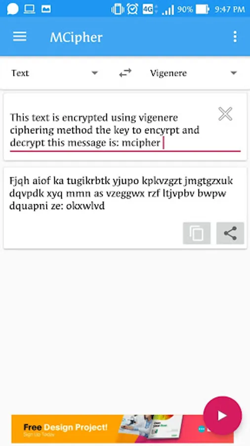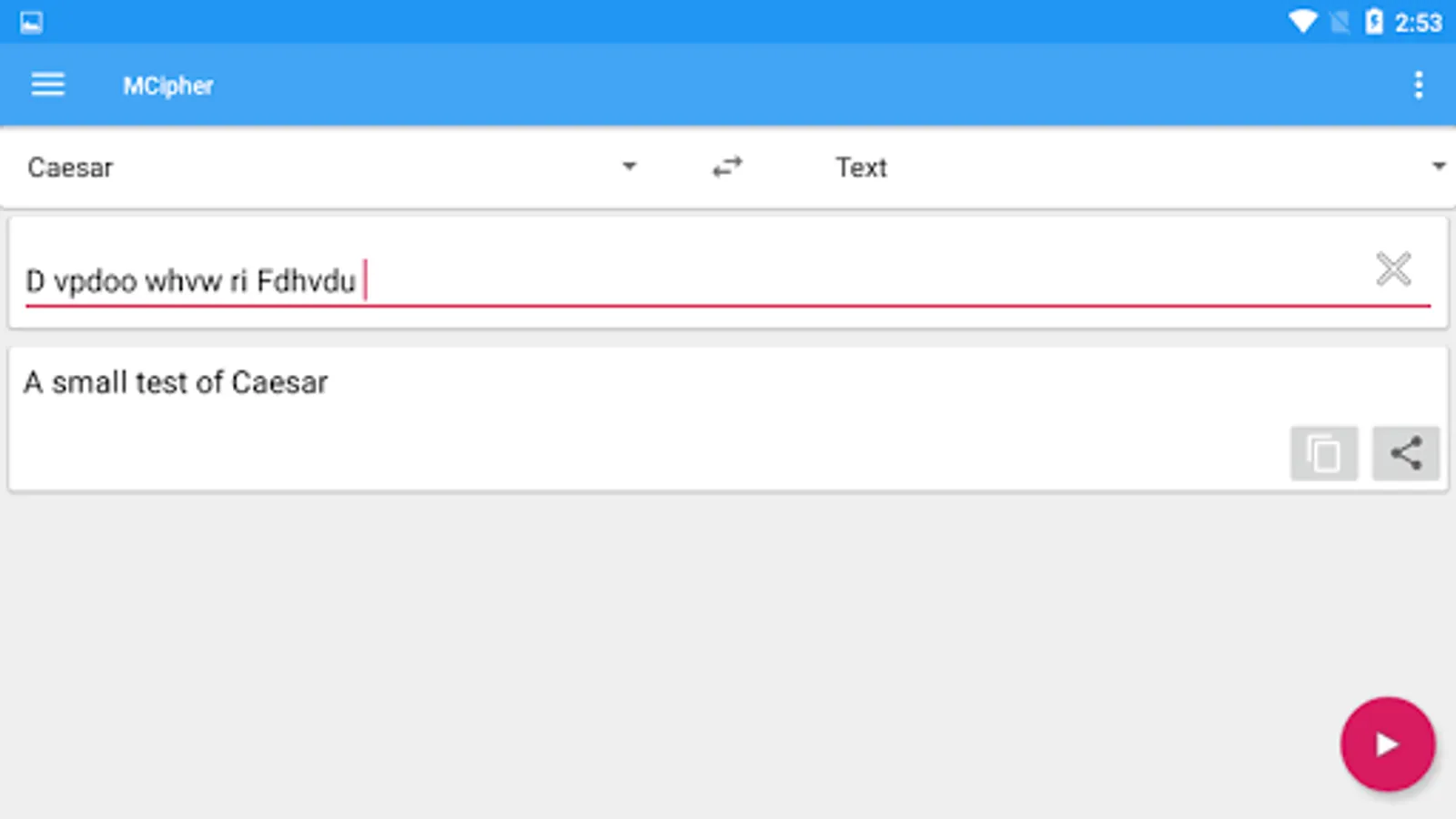 MCipher is a simple encrypting & decrypting app that uses some known methods to secure texts, messages, passwords (etc..)