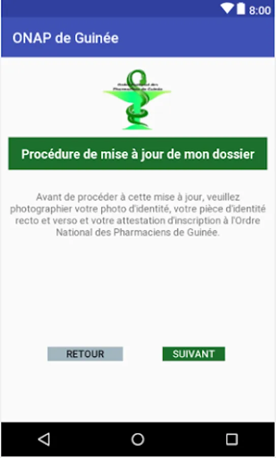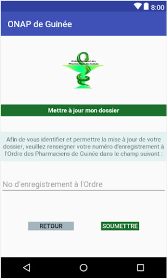 The ONAP application of Guinea (National Order of Pharmacists of Guinea) allows the dematerialization of pre-registrations and the updating of files to the order of pharmacists of the Republic of Guinea.