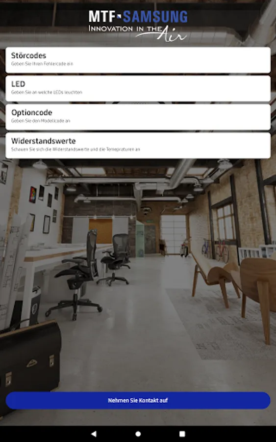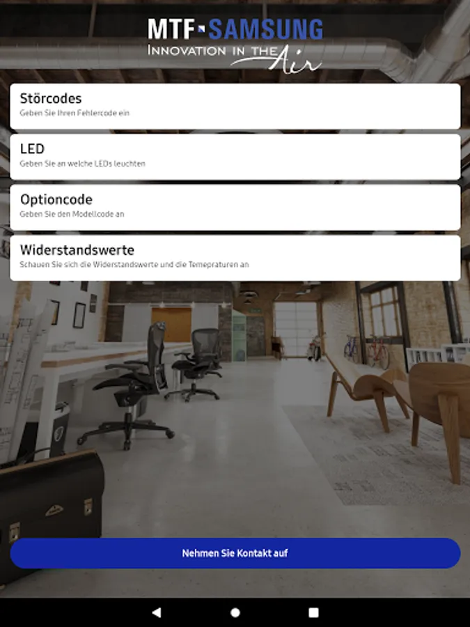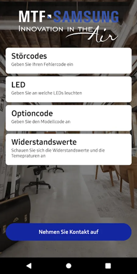 With the MTF SERVICE app, fault messages, option codes and component information for Samsung air conditioning and heat pump systems can be analyzed and rectified.