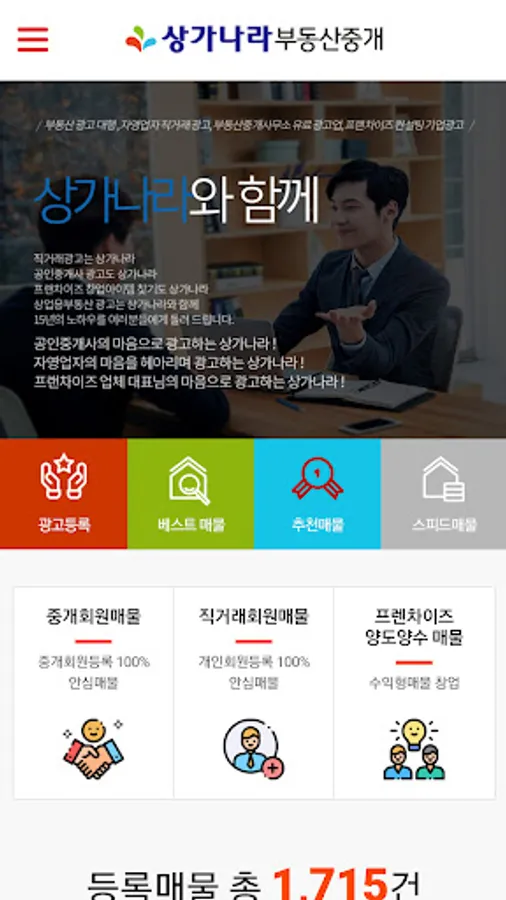 It is a mobile application for commercial real estate, commercial real estate for rental, sale, and direct transaction of shopping malls across the country.