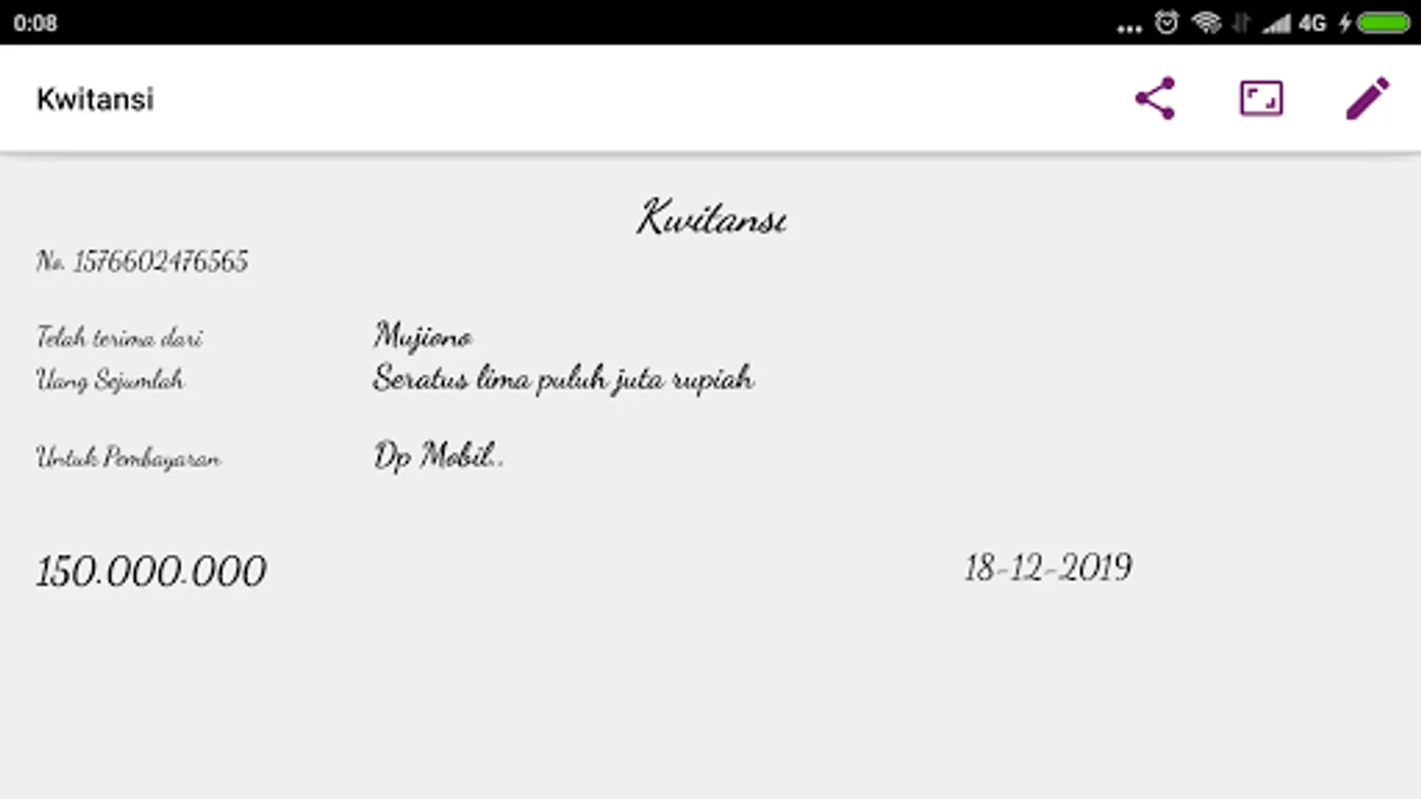 Receipt is an application that is made simple like a paper receipt. Easy to use, practical and not difficult.