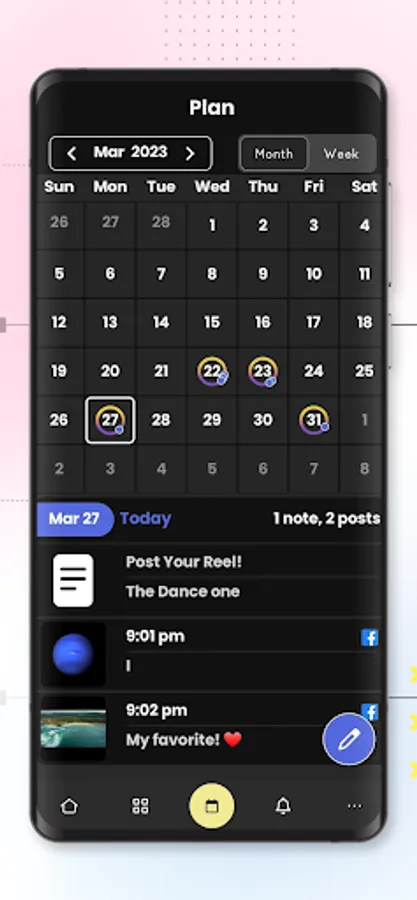 But we don't just stop at scheduling and image editing - our platform also includes a calendar to help plan out posts weeks in advance as well as weekly strategy prompts to help focus posts around certain themes. This means you can stay organized and on top of your social media strategy, ensuring that you're always posting content that resonates with your audience.