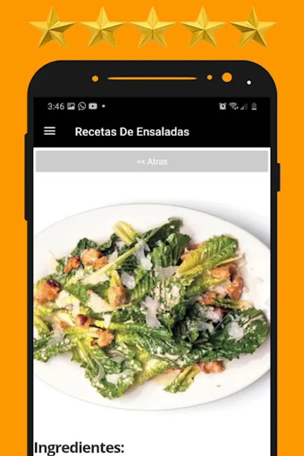 It is a very easy to use application, you only have to select your favorite salad recipe and you will see the necessary ingredients, and the step-by-step preparation mode until you have the dish ready.
