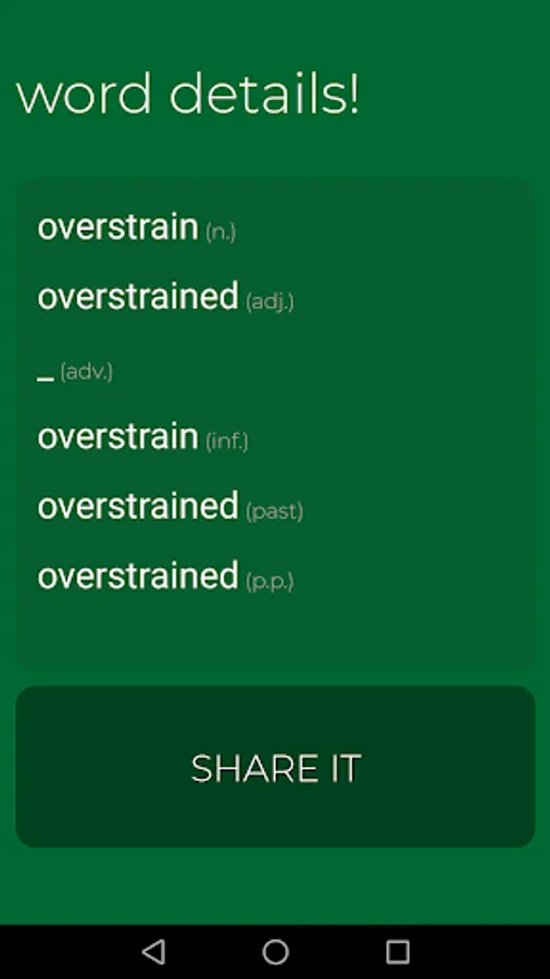 it doesn't matter whether you're a beginner or a fluent speaker, this app can help you find all parts of speach related to a word so easily!