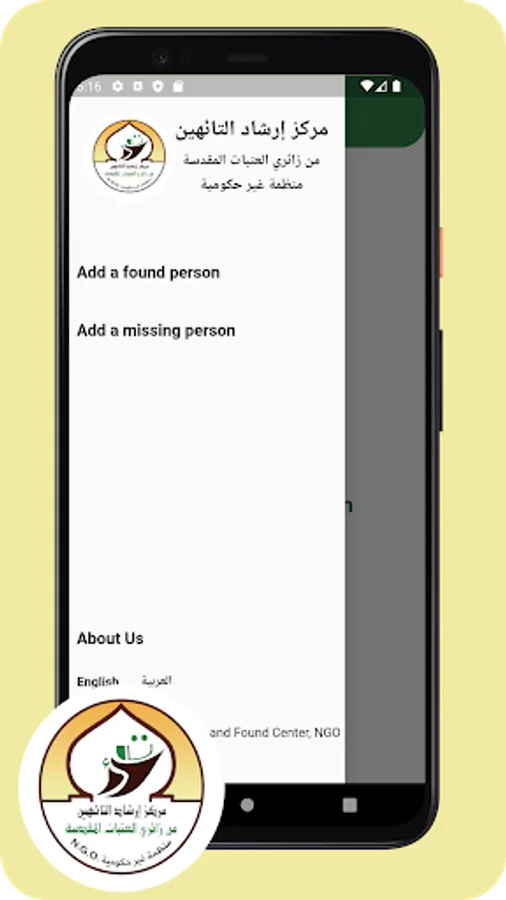 (مركز إرشاد التائهين من زوار العتبات المقدسة) or Center of Lost and Found People of the Holy Shrines Visitors is a non-governmental organization that aims to help people find their lost ones during grand events in addition to expanding communication channels between people. We are totally independent organization from any political party.