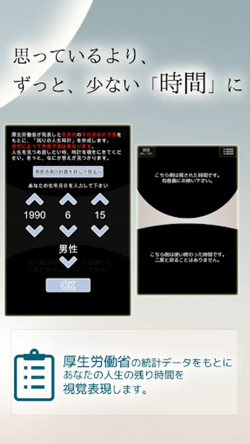 Naturally, the numerical value is a measurement value to the last, it is totally different from the time of each rich life's life, and this application is part of the concept of the theme "Let's re-examine life" Please think.