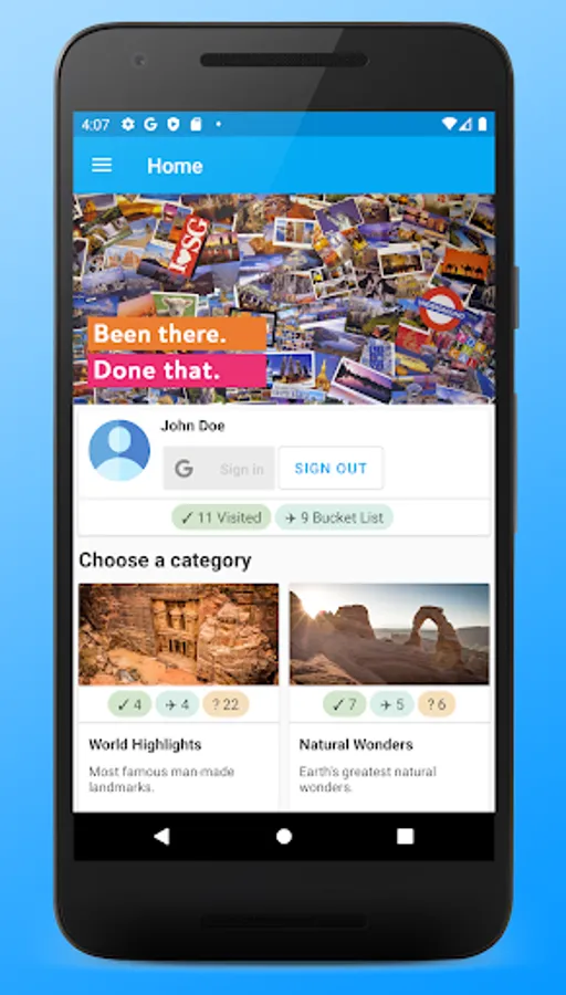 Been there. Done that. helps you to keep track of how many of the world's most famous attractions and must-see places you have been to.
