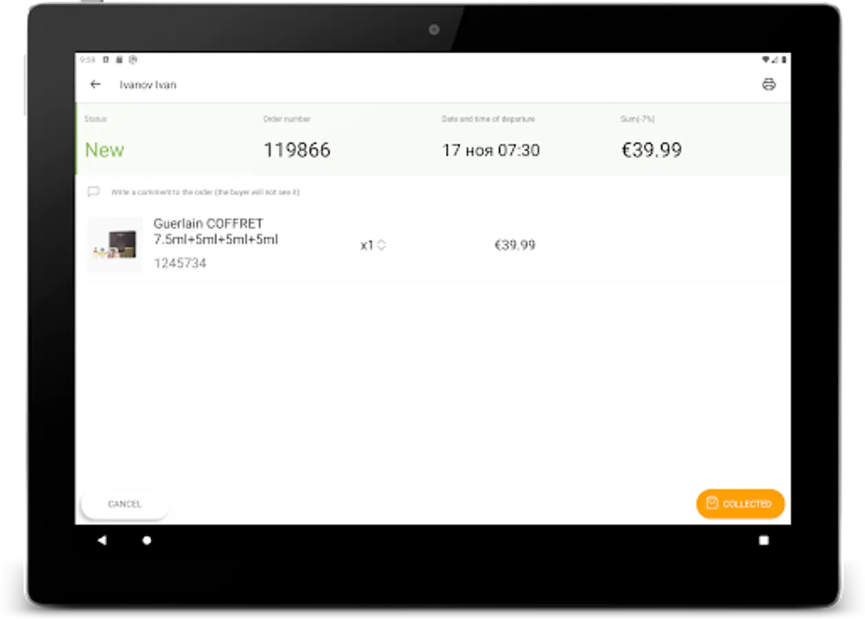Приложение для кассиров, которые работают с системой предзаказа Mydutyfree
