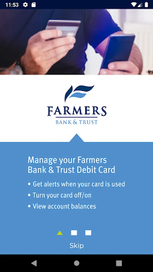 MyFarmers Debit Card Manager is the best place to manage your debit card. It helps protect your debit card by sending you alerts when your card is used so you can quickly detect unauthorized or fraudulent activity on your account. Users have the option to receive alerts via text or email. You can also check your account balance anytime, turn your card off and on, send money to other users and find nearby ATMs.