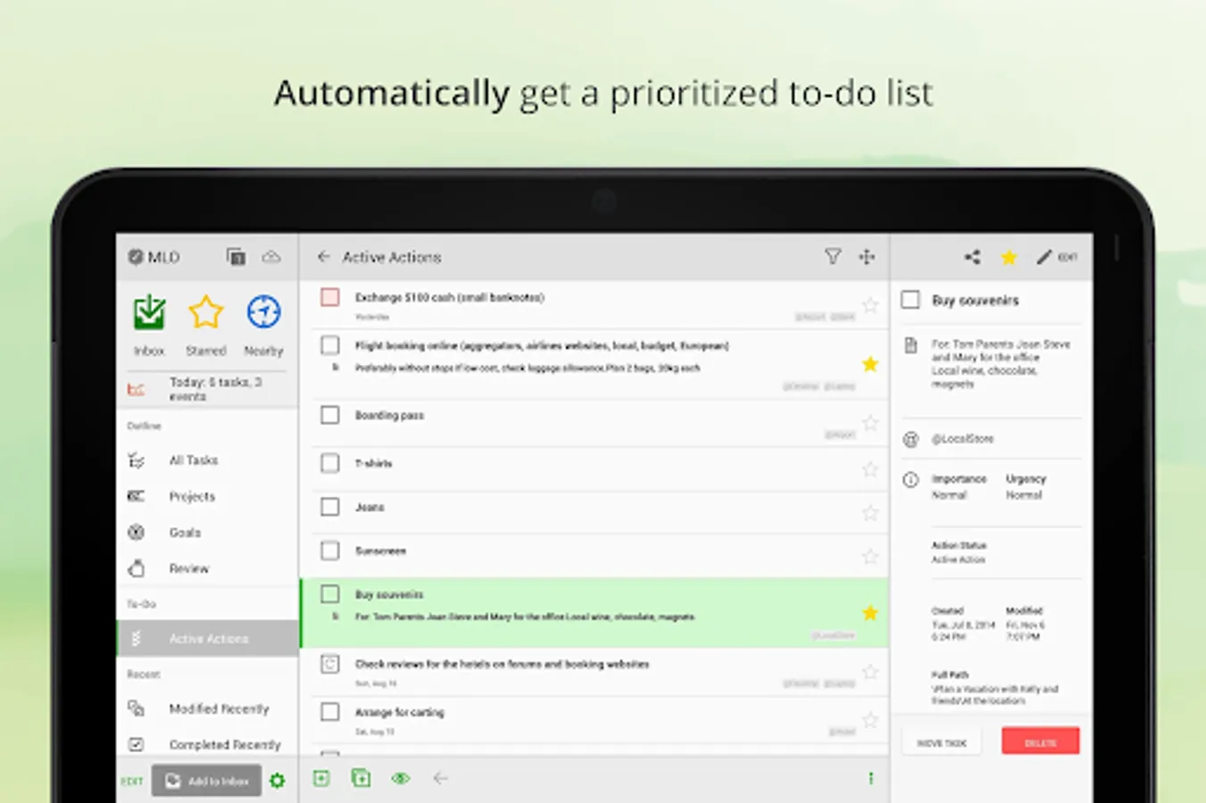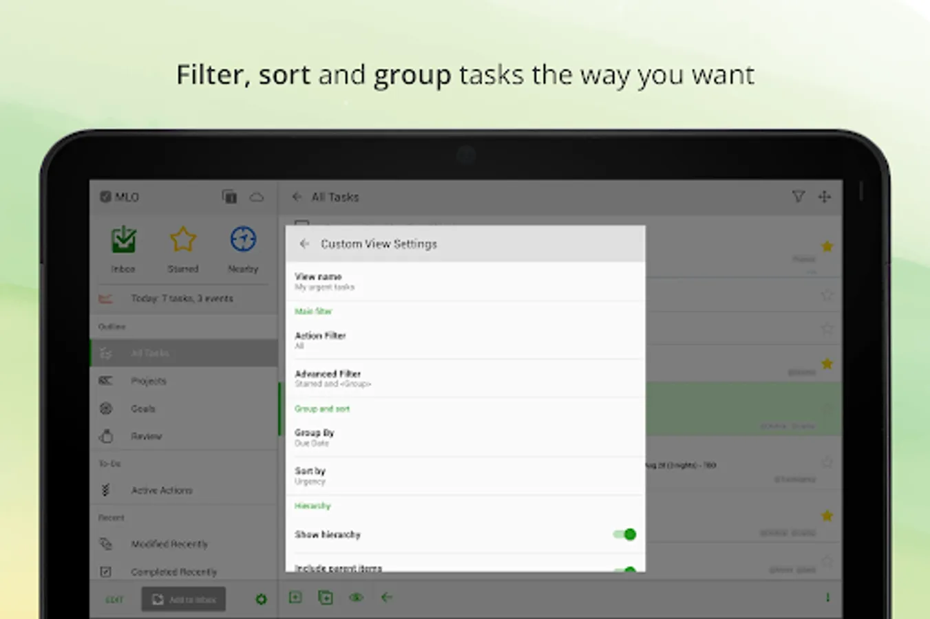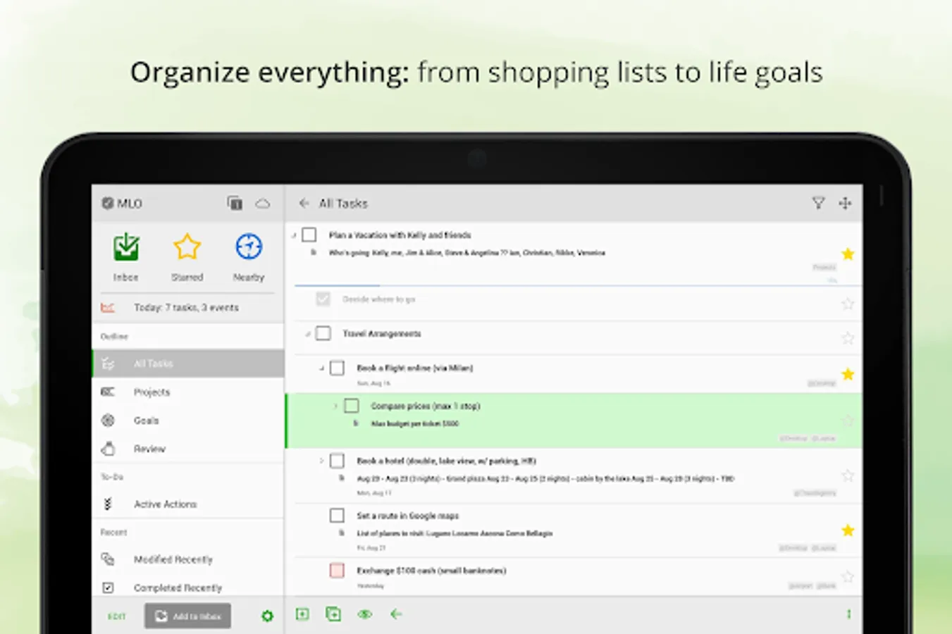 MLO leads to a new level of productivity — you can manage not only tasks but projects, habits and even life goals. Designed to strike a balance between the simple and the complex, MLO comes with optional contexts, tags, stars, flags, reminders, dates, priorities, completely customizable filters and views that make MLO flexible enough to adapt to your own system for managing your tasks. It is particularly suited for those who are truly serious about personal task management.