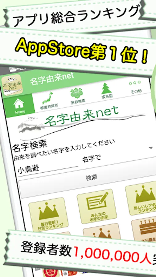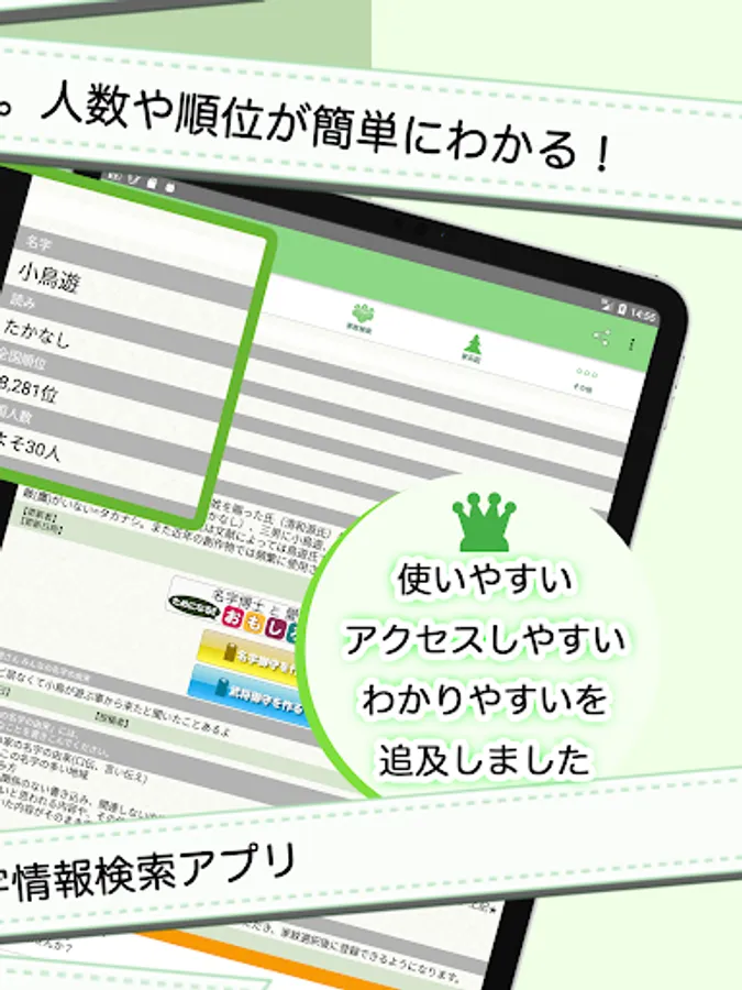 ・ A surname and name information search application that pursues "ease of use, ease of understanding, and ease of access" from the customer's point of view.