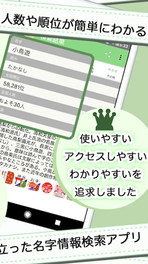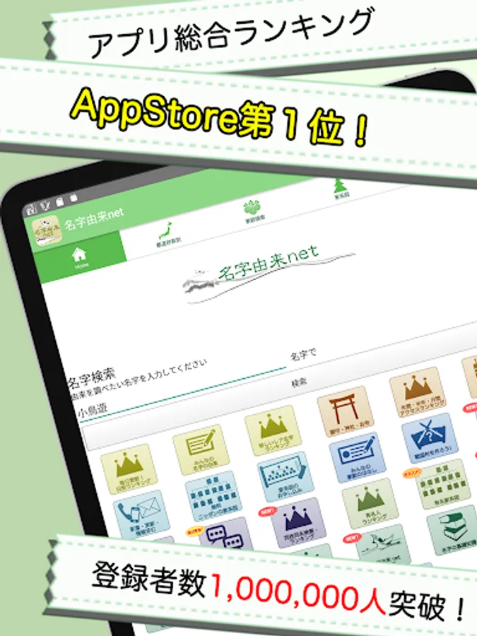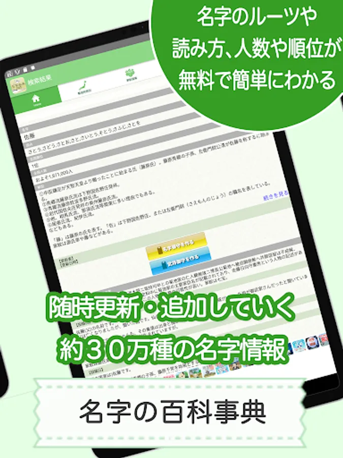 * Since the surname-derived net app is network-linked for information search, it is not a product problem of the app, but a situation such as "temporarily inaccessible" or "search content is not displayed" due to the load on the server or line. may occur. In addition, depending on the model, it may not be possible to display or input old fonts, etc., so we apologize for the inconvenience, but we ask for your understanding and cooperation in using it.