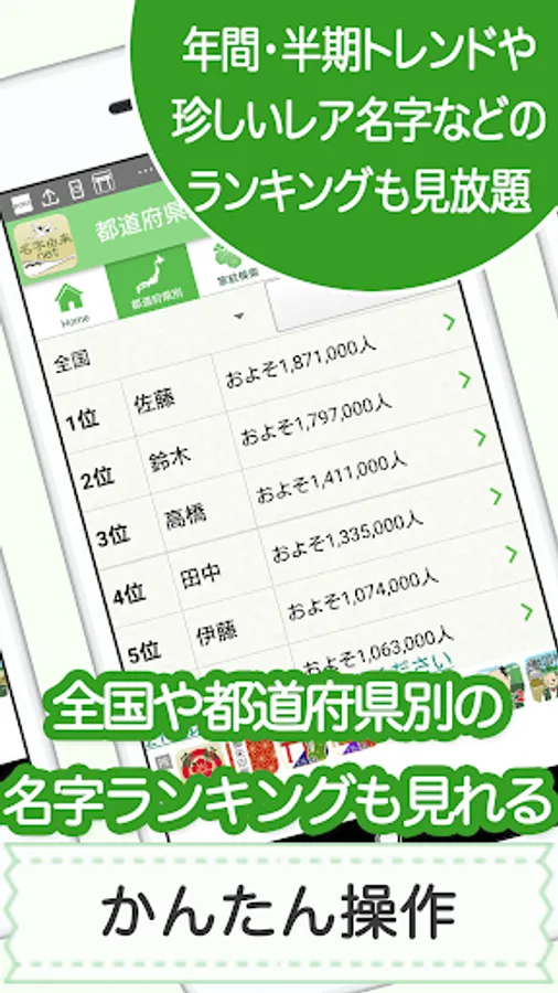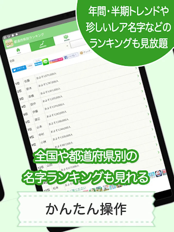 ・You can see at a glance the “last name ranking by prefecture” and “same surname same name ranking”.