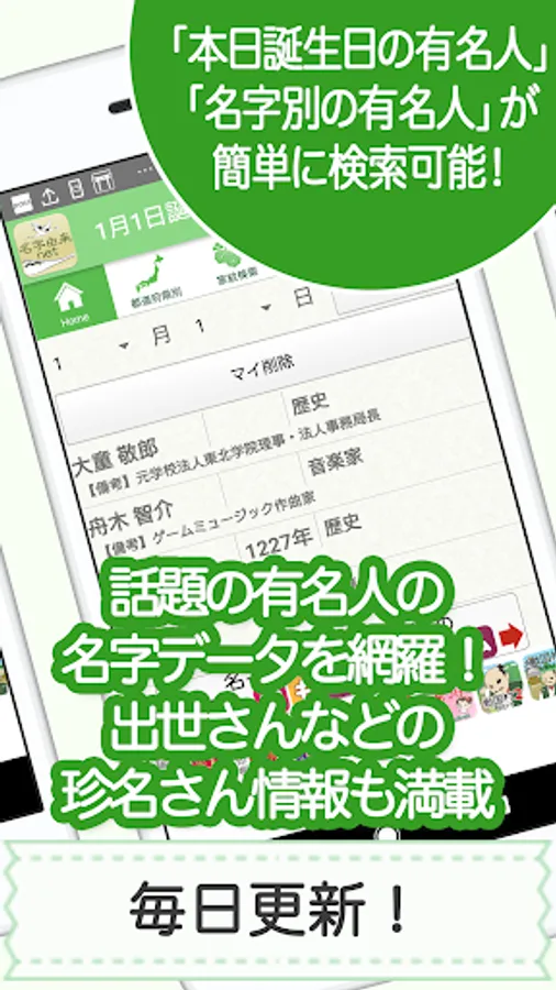 ・ Covers surname data of celebrities, celebrities, athletes, politicians, cultural figures, etc. who are hot topics in news and 2-chan summary.