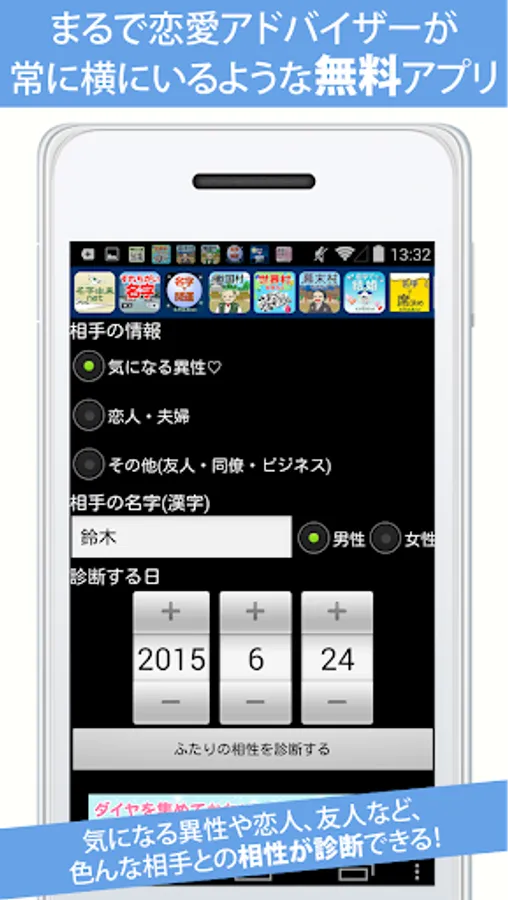 ・You can also diagnose compatibility with business partners by name, such as going to a business office today, so please use it every day.