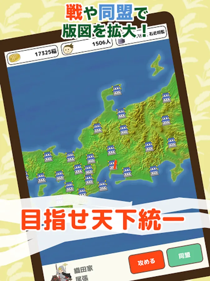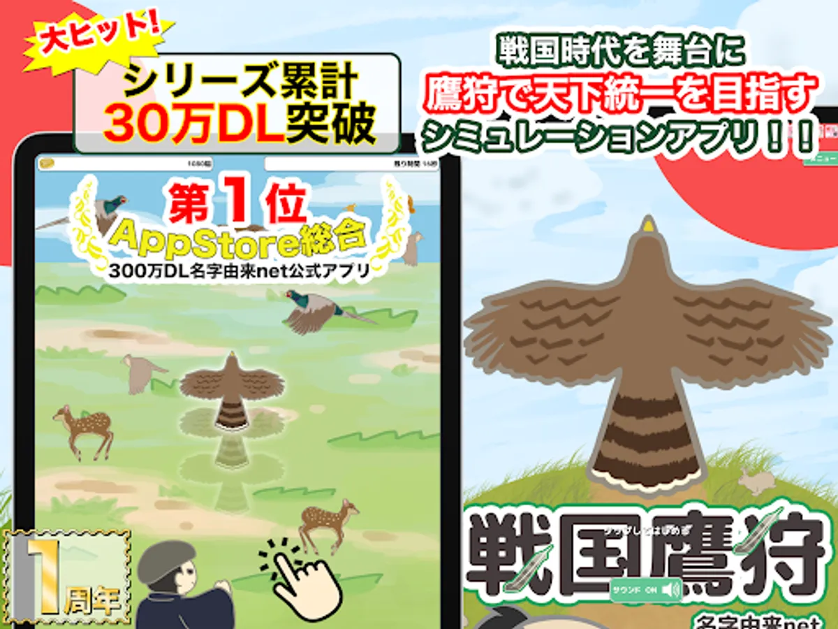 The popular mini-game "Falconry" in the blockbuster game "Let's Make Sengokumura 2" has been upgraded and is a "nation-building simulation app" set in the Warring States period, which is based on the Gunyu Wari.