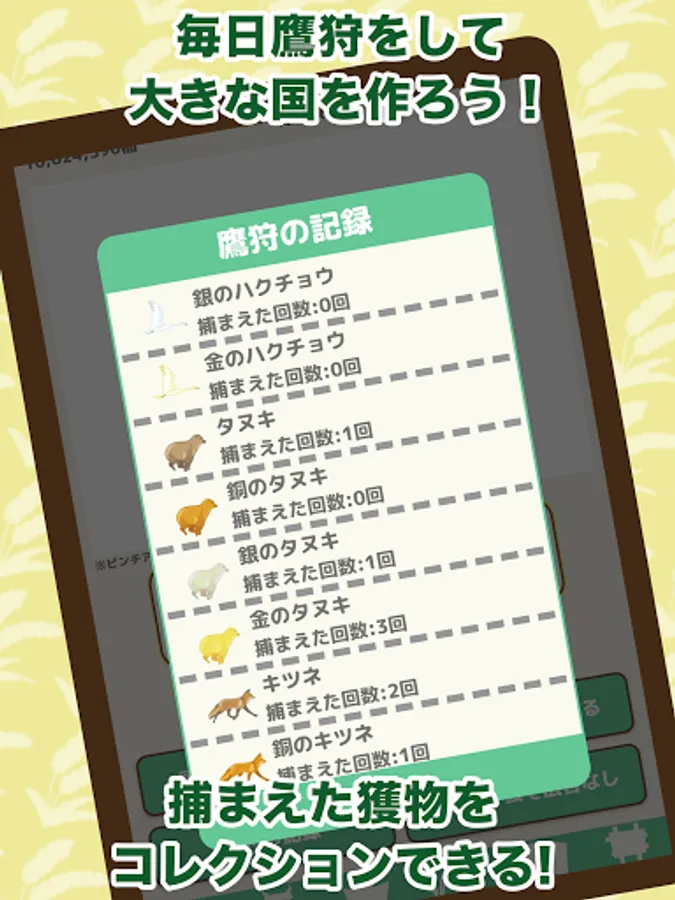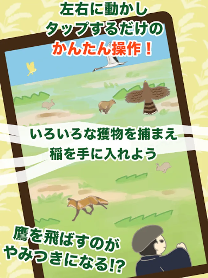 When you tap the falconer, the falcon will fly and you can catch various prey that appear from the left and right. The caught prey becomes the rice point.