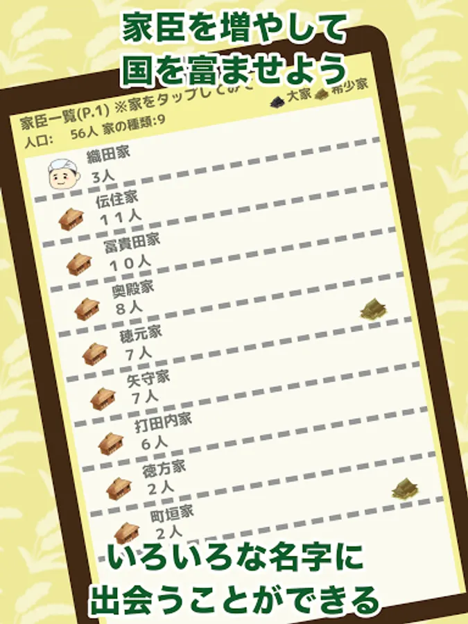 Whether you are interested in surnames (surnames) or not, this is a game where you can grow the country bearing your surname while falconry and unify the world. In the ranking, you can compete with the strongest countries in Japan and around the world for development. Now that the number of family members is decreasing, let's increase your own family and vassals and experience the real thrill of growing the country.