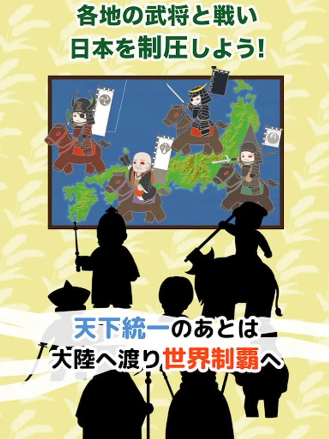 Can we defeat the enemies who are divided into groups such as Nobunaga Oda, Ieyasu Tokugawa, Shingen Takeda, Kenshin Uesugi, Mori Motonari, Hojo Ujiyasu, Yoshihisa Shimazu, Date Masamune, and Masayuki Sanada to unify the world! ??