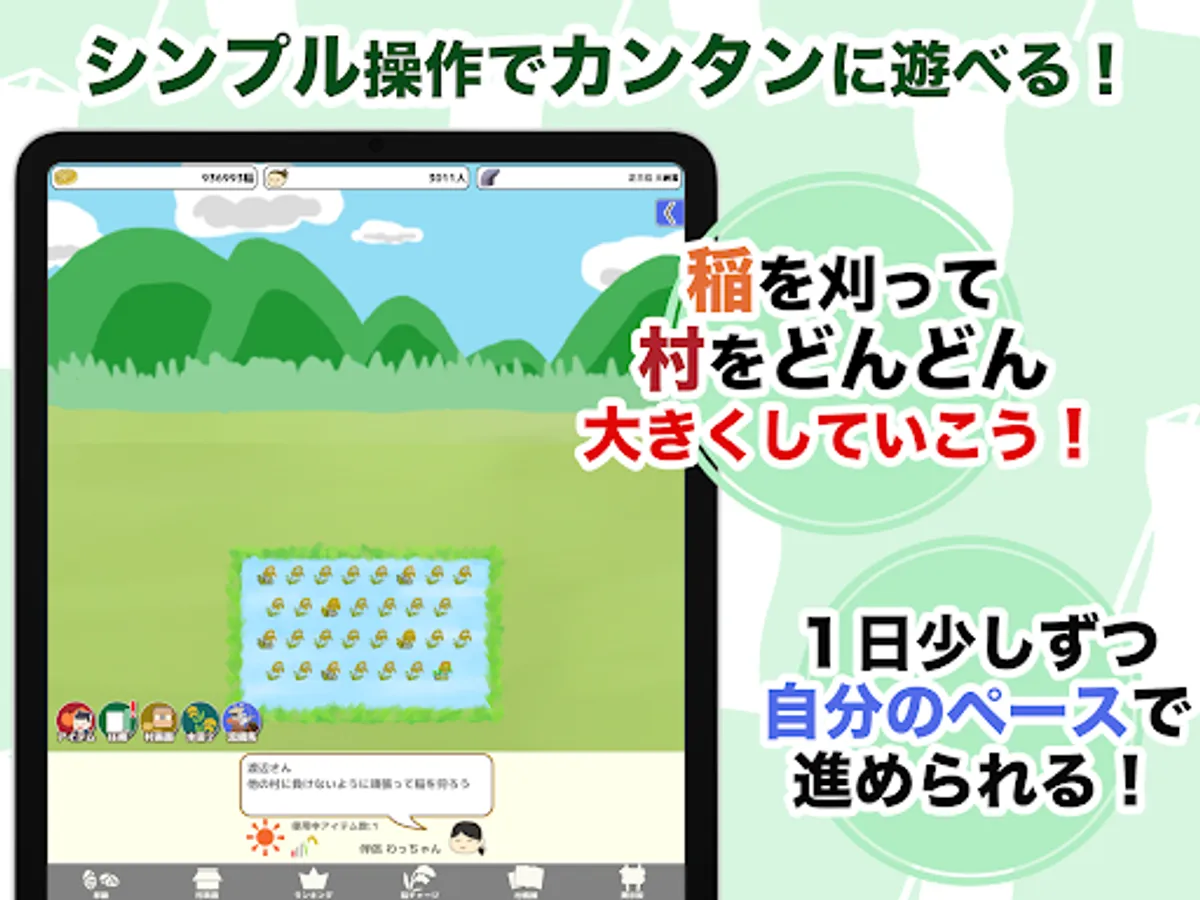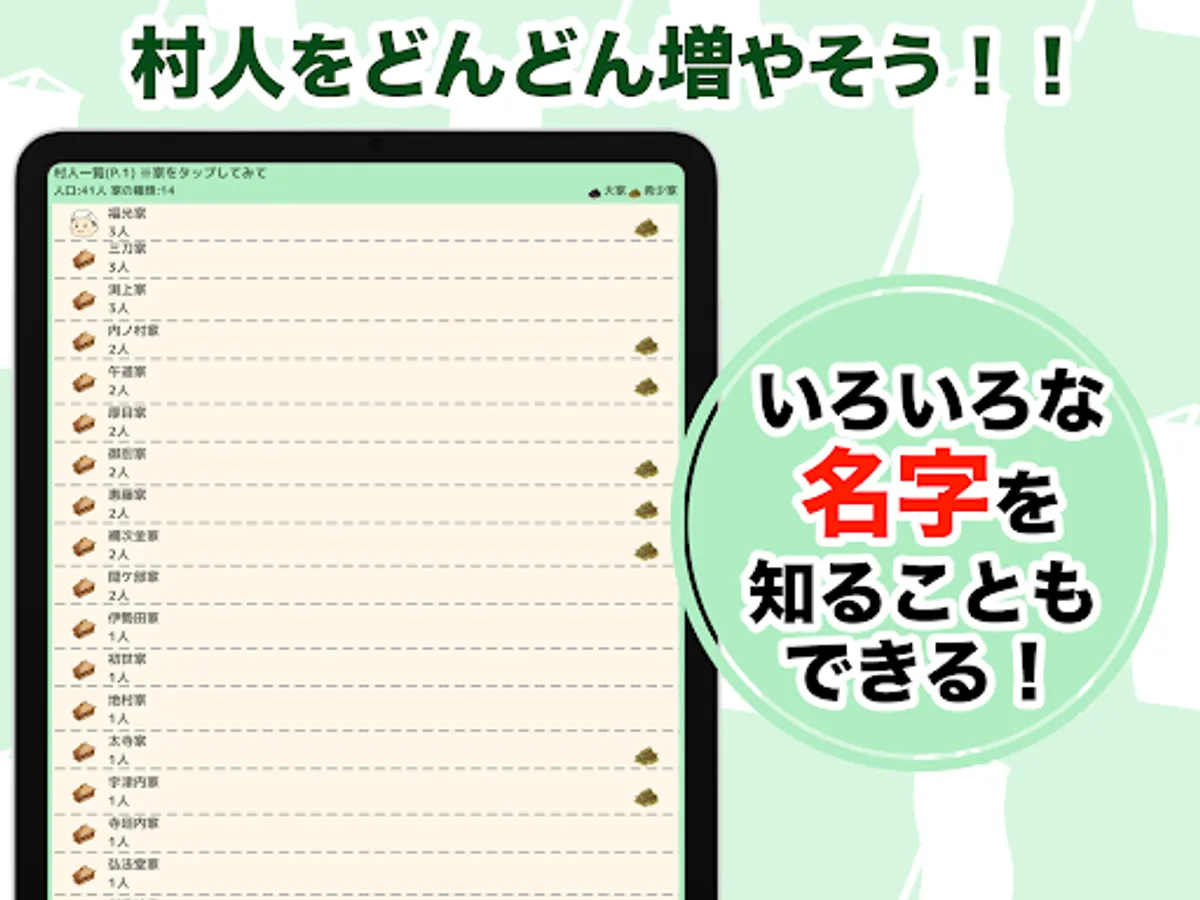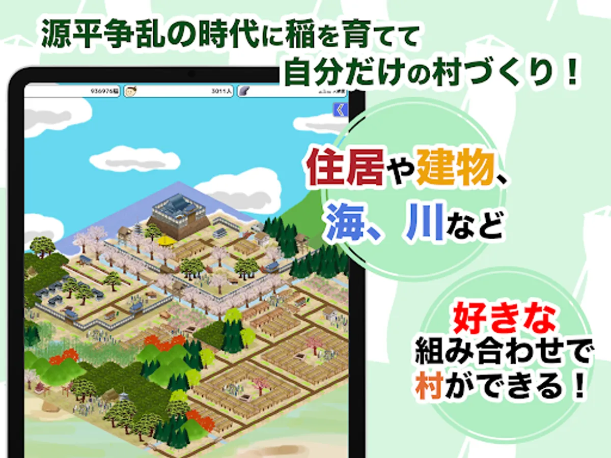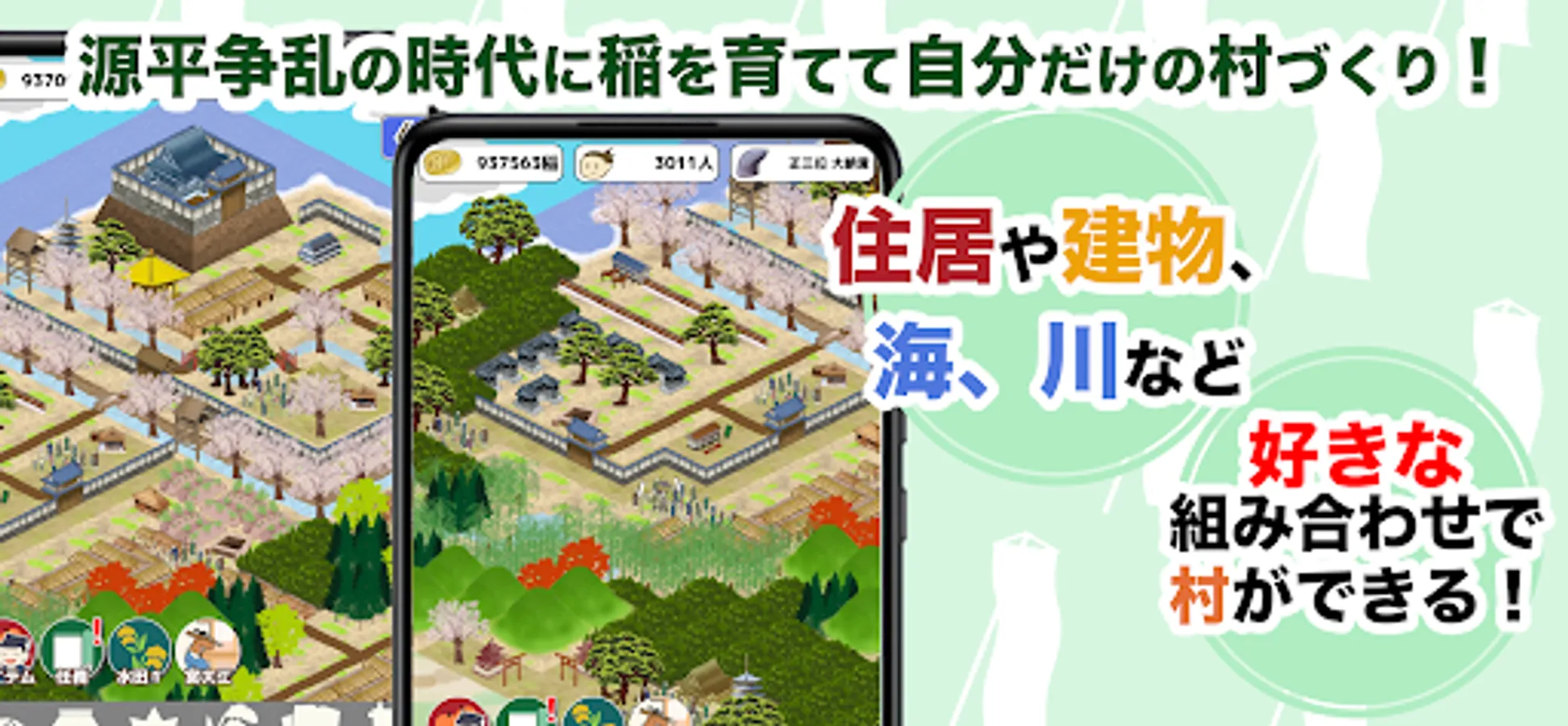 This is a history game that allows people who are not interested in surnames (last names) to grow a village named after their surname and achieve the unification of Japan. In the ranking, you can compete for the development of the strongest villages and villages in Japan and around the world. Now that families are becoming smaller and smaller, let's experience the real thrill of growing your village by harvesting rice and increasing your own family. Born from the hit game "Let's make a Sengoku village", this is a "rice harvesting village training simulation app" set in the Genpei War at the end of the Heian period.
