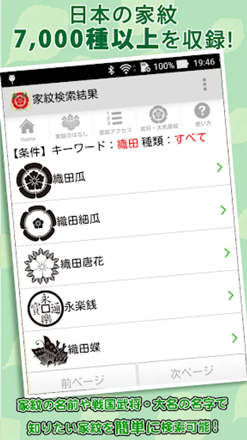 Free, easy one-touch search for 8,000 types of "family crests"!