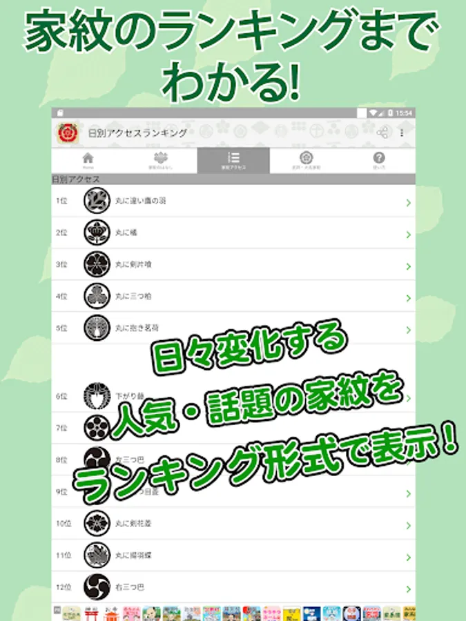 ・In the family crest access ranking, you can see the popular family crest at a glance.