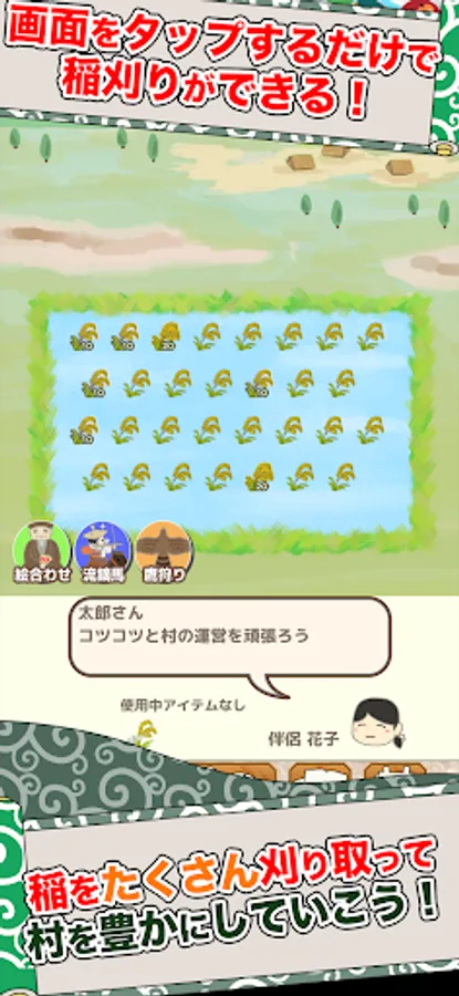 *If rice does not grow after starting the game, please switch the screen several times and wait for a while with the rice field screen displayed.