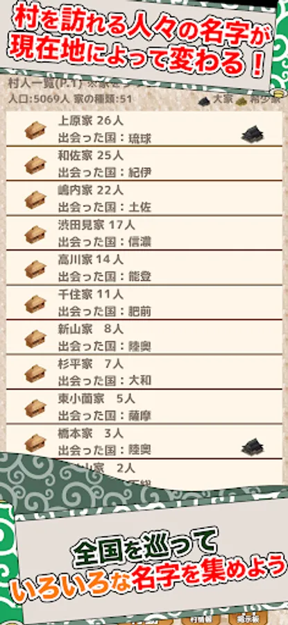 In "Let's make a Sengoku village 3", you can start the game from each region in Japan, and the surnames of people who visit the village will change according to their current location.