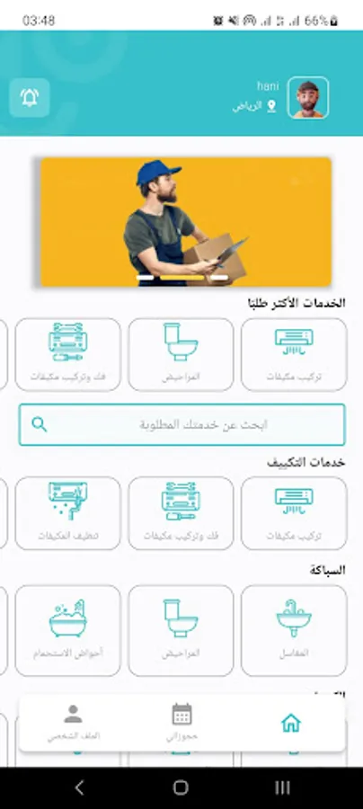 سيأتي السباك لمنزلك وينهي المهمة المطلوبة مع إمكانية تتبعه في طريقه لك، وبعد تنفيذ المهمة سيتكفل التطبيق بإنجاز باقي المهام لك من دفع وتقييم ومتابعة وجدولة الحجوزات.