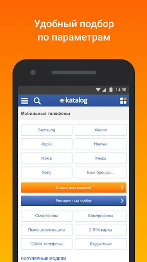 Convenient and detailed filters will help you quickly navigate among the many products and choose the most suitable one. To do this, simply specify the required parameters: smartphone screen diagonal, operating system, supported functions and capabilities; you can even choose a mobile phone based on how much of the bezel it occupies.