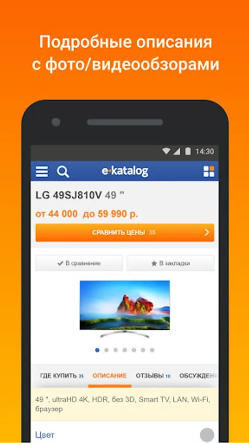The application will help you choose a product, compare its price in popular online stores and purchase with maximum savings.