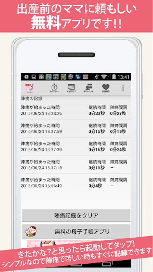 ・ Because the user is informed that the birth is near when the interval becomes short, it is also a guide to go to the hospital.
