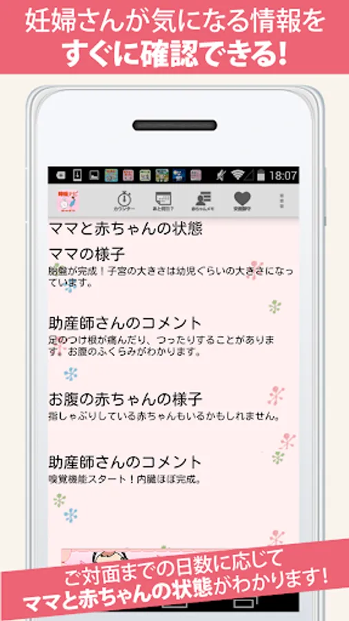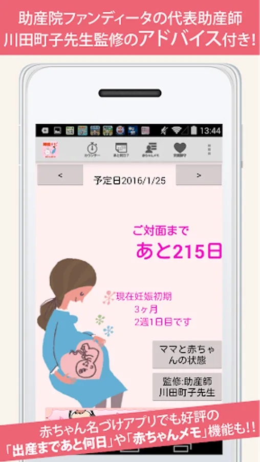 ・ We can count down until we meet with baby by "how many days until childbirth" function. (Requires free membership registration)
