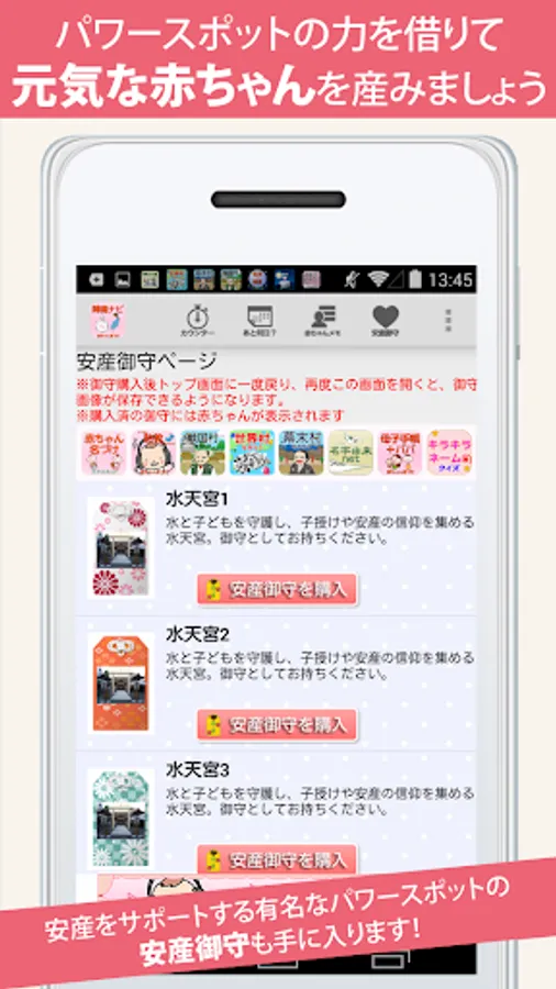 ※ "No days until childbirth" "Baby Memo" function is linked with the network, so it is not a problem on the product of the application, but a situation such as "temporarily inaccessible" occurs due to the load of the server or line There is also a case. We apologize for the inconvenience but thank you for your cooperation in using the service after understanding the above.