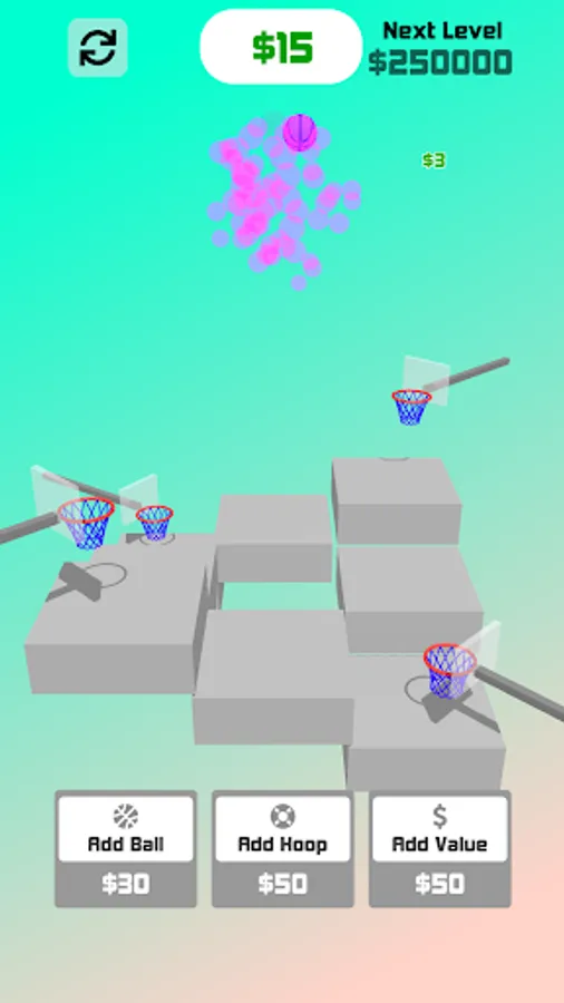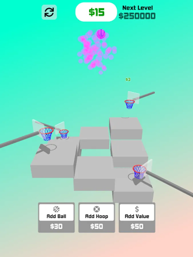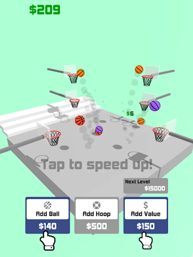 Basket Frenzy is a game where you earn cash from scoring hoops. The more you earn the more balls and baskets you can add. Merge the balls and earn enough cash to advance to the next level.