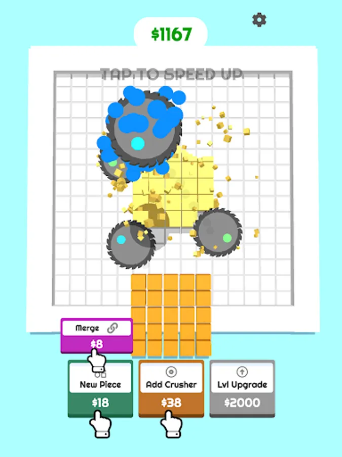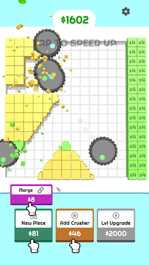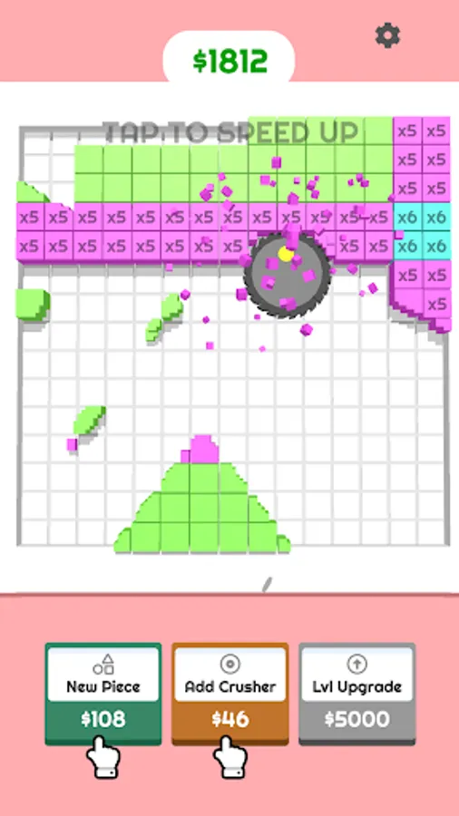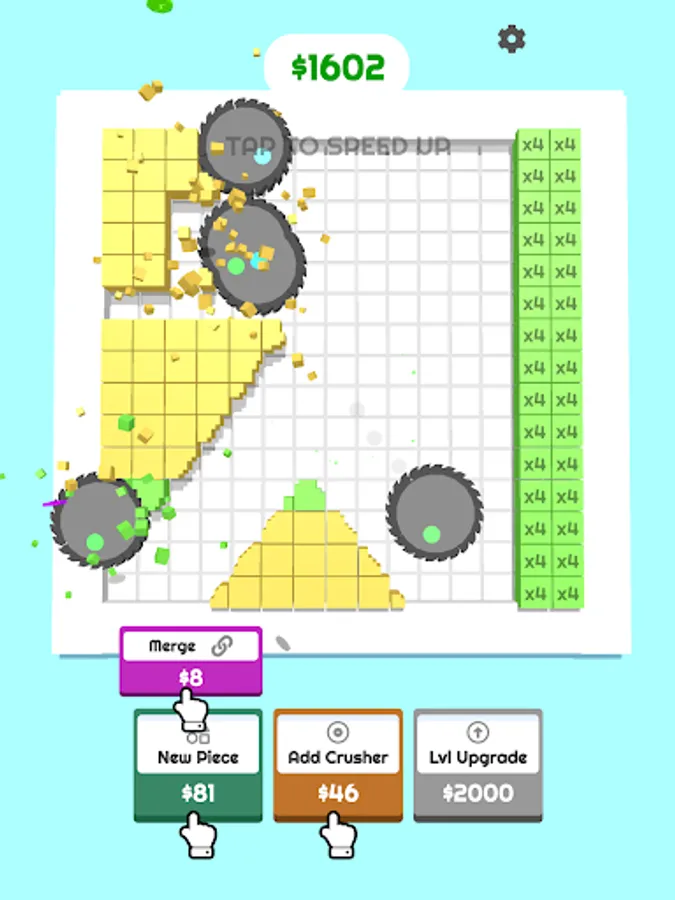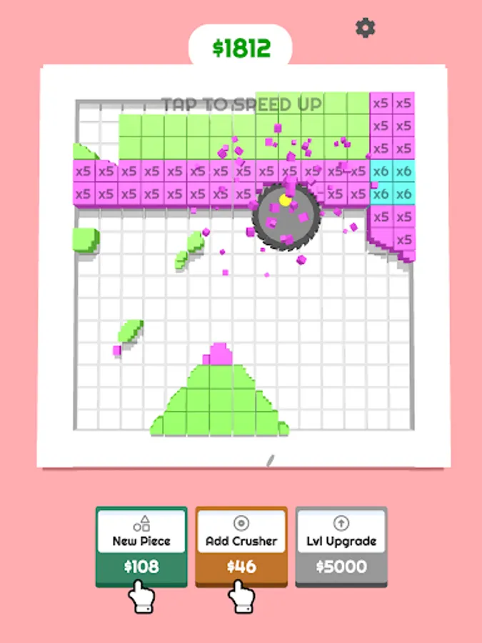 Simply add puzzle pieces to make full rows and columns to get the multipliers. Upgrade your Crushers and merge them to earn maximum points. Can you level up?