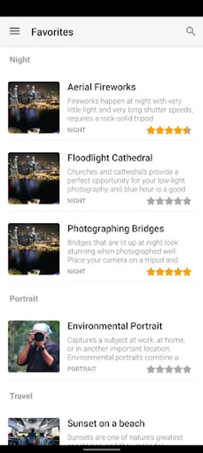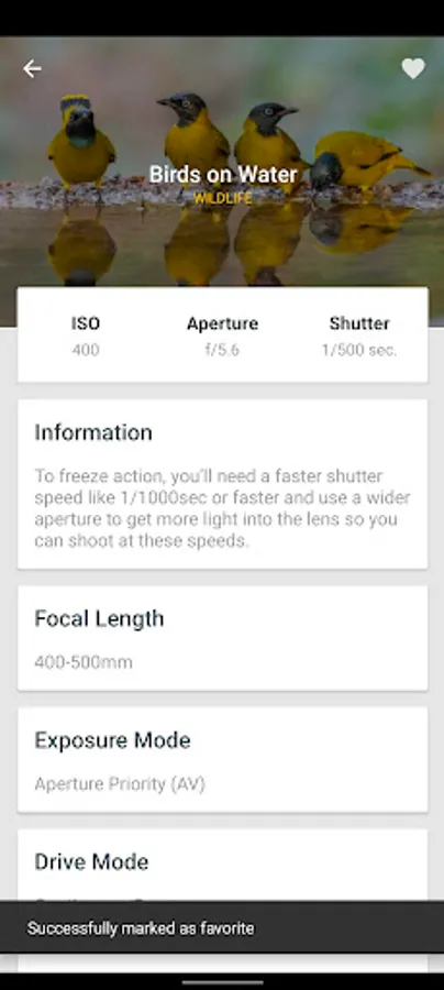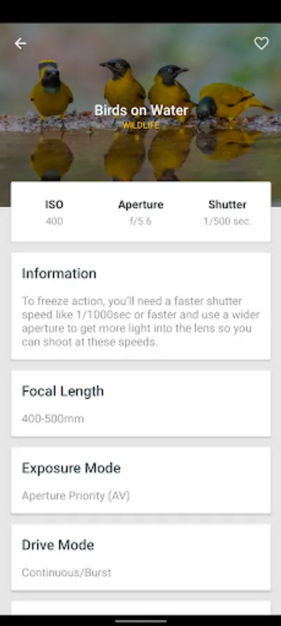 You not need to carry any cheat-sheets or any printed guides; just tap open the desired camera setting and save time in making last minute adjustments and avoid loosing the precious moments.