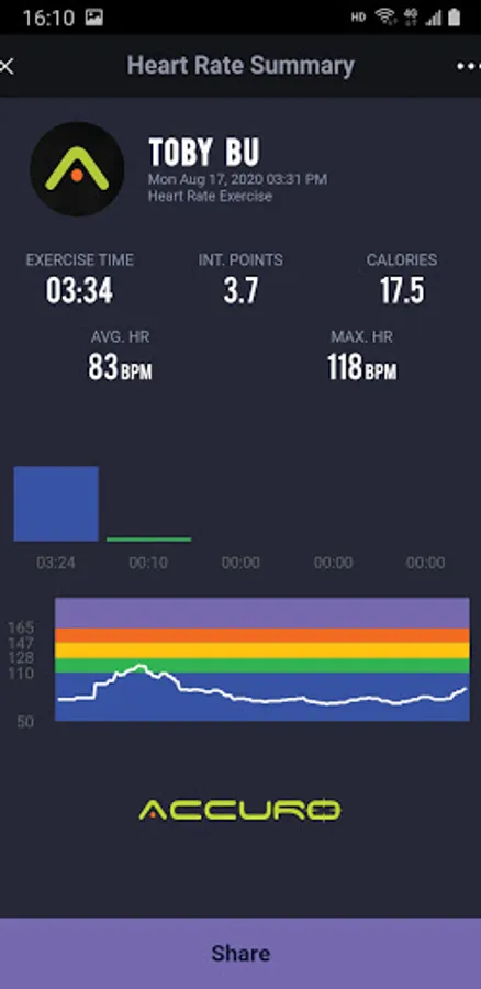 • View real time heart rate displayed in colored heart rate zone