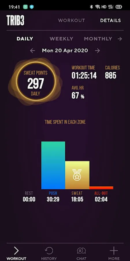 Tracked metrics include calories burned, SWEAT Points earned, heart rate plus your time spent in different heart rate zones and you can toggle between daily, weekly and monthly views as well as annual totals.