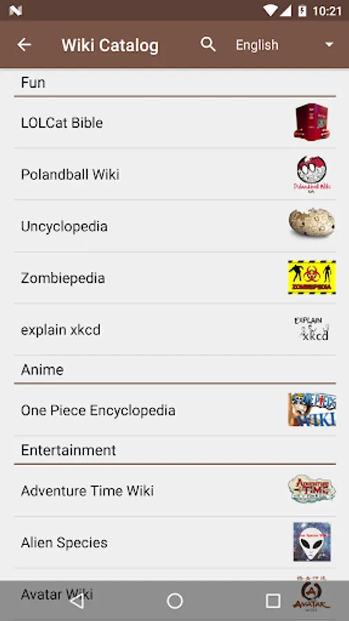 EveryWiki gives you access to the usual wikis like Wikipedia, Wiktionary, but also to the likes of Uncyclopedia, Wikivoyage, and many, many more.