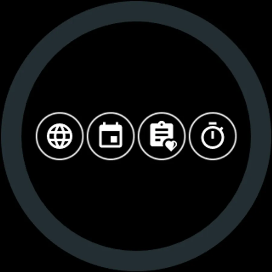 Supports up to 4 complications (function to add favorite view window, such as next event, world clock, stopwatch, fitness info, etc).