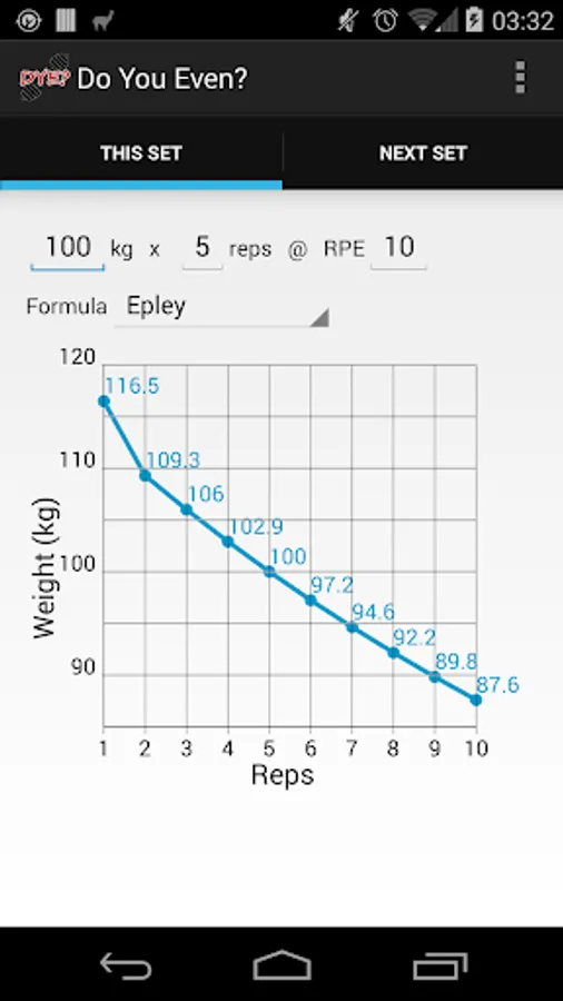 Do You Even? is a one-rep max calculator that also suggests sets to do based on your estimated 1RM. Check out the sweet charts!