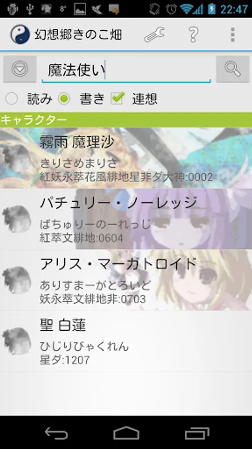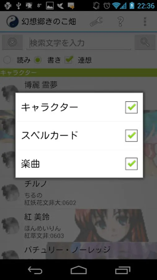 It is a [mushroom app] to easily enter the words that come out to the east Project. Sorry, this application is Japanese only.