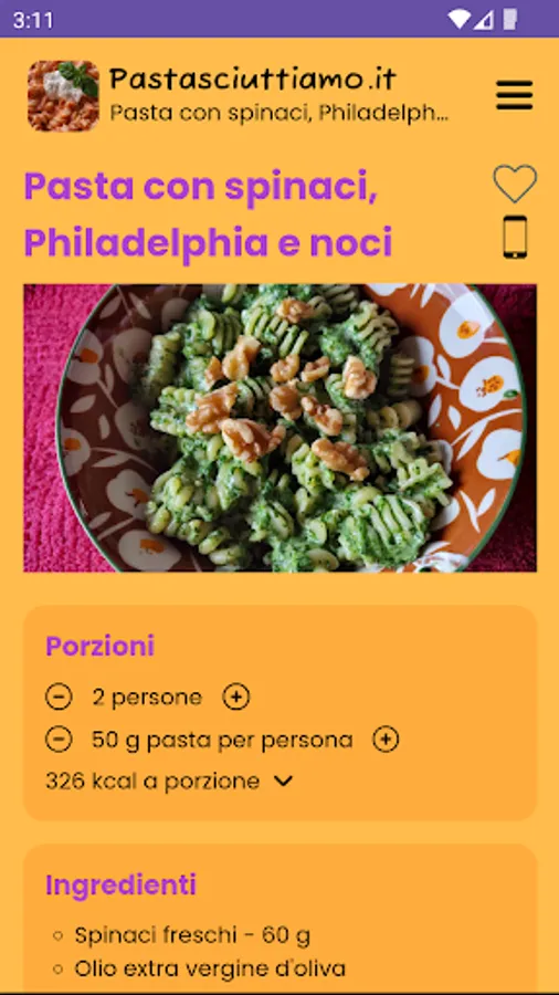 - ๐ฅ Ability to change the number of portions and amount of pasta per portion